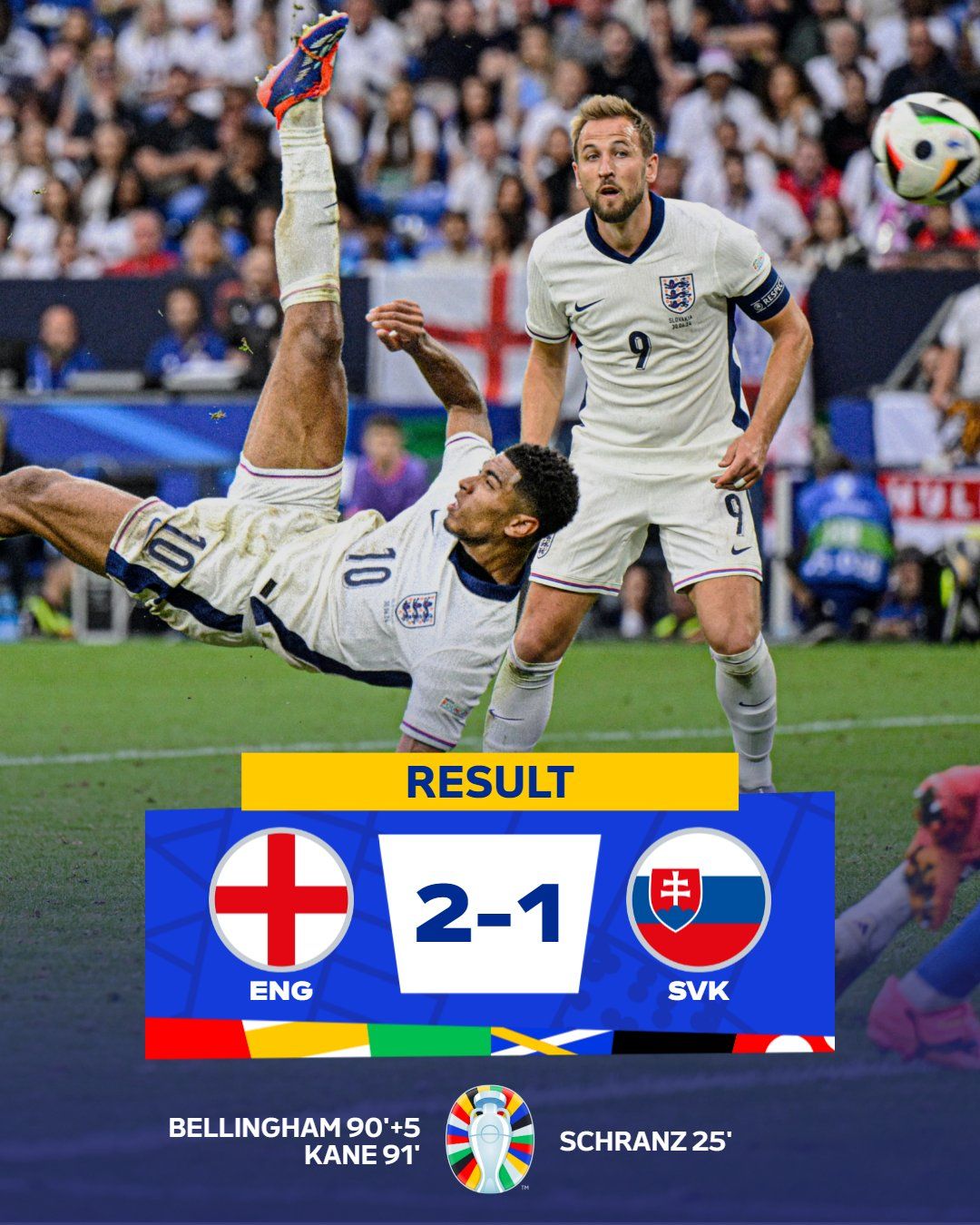 贝林厄姆补时倒钩绝平 凯恩加时头球建功 英格兰2-1斯洛伐克晋级八强>>>