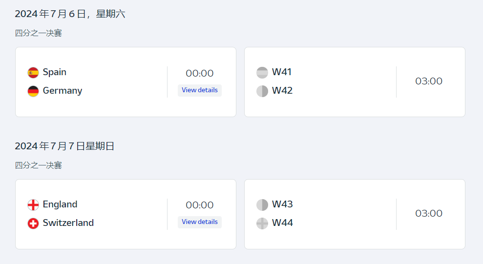 🔥本届欧洲杯前两组1/4决赛对决出炉:西班牙vs德国 英格兰vs瑞士>>>